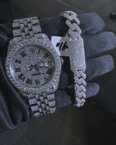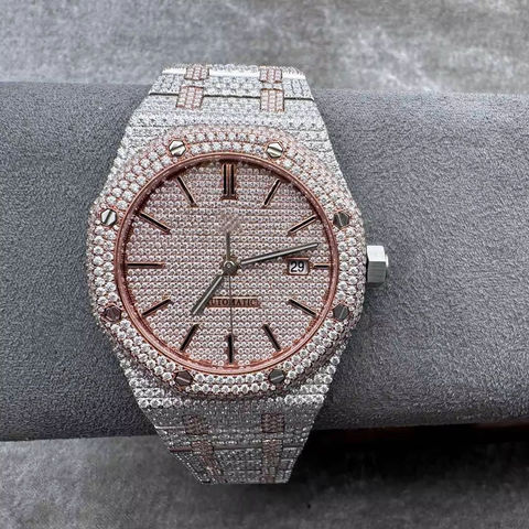 Custom Top Kwaliteit Lichtgevende Diamant Horloge 41Mm 3120 Beweging 15400 Rose Goud Vvs Full Diamond Ice Moissanite